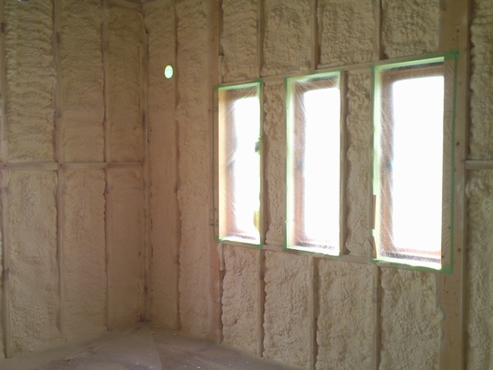 硬質ウレタンフォームは、繊維状のグラスウールやボード状のポリスチレンフォームと違い、現場にて吹き付けて発泡させて断熱層を形成する素材です。
