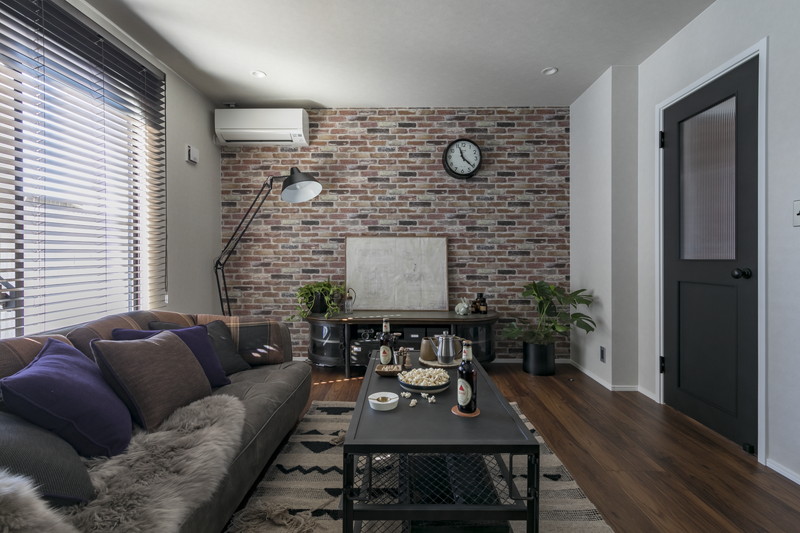 部屋の壁一面に配されたレンガは、部屋を一気にブルックリンの世界観へと変化させます。他の壁や天井が白で統一されている分、レンガ調の壁の存在感が引き立っています。