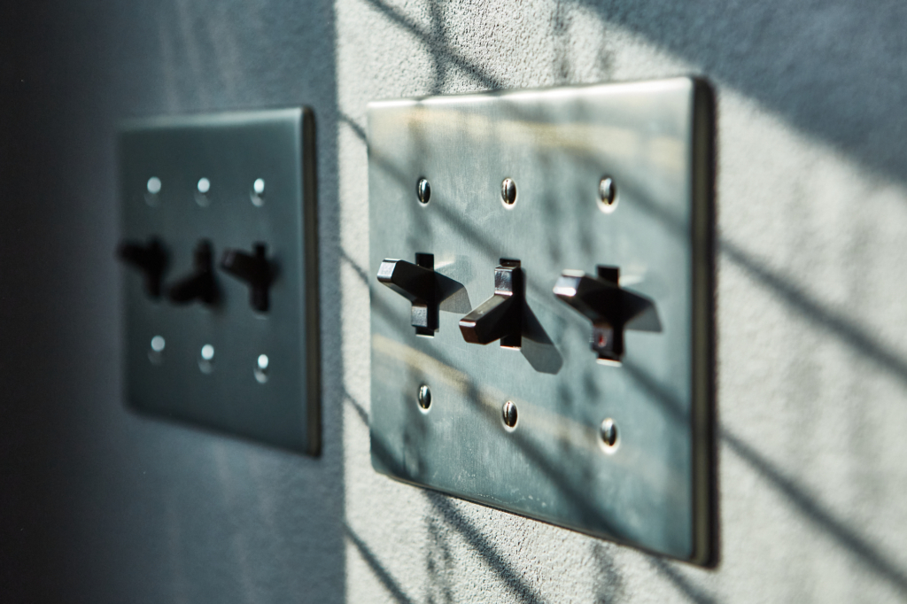 インダストリアルテイストやアンティークな雰囲気の部屋には、トグルスイッチもおすすめです。部屋の雰囲気に合わせて照明スイッチも変えてみると、デザインの幅がより広がるでしょう。