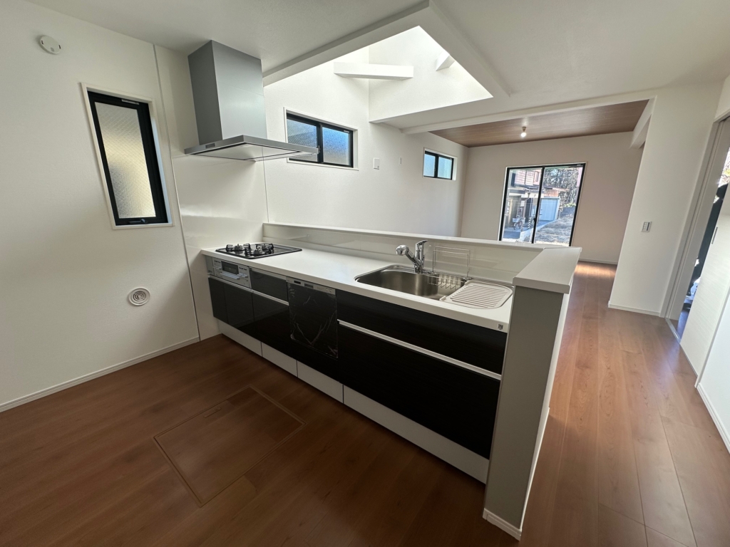 玄関を開けると、明るいリビングから、二人の楽しそうな声が聞こえてきそうですね。吹き抜けから降り注ぐ柔らかな光が、二人の新生活を優しく包み込みます。キッチンで料理をする奥様と、リビングでくつろぐご主人。どこにいても、お互いの気配を感じられる、そんな温かい空間が生まれました。