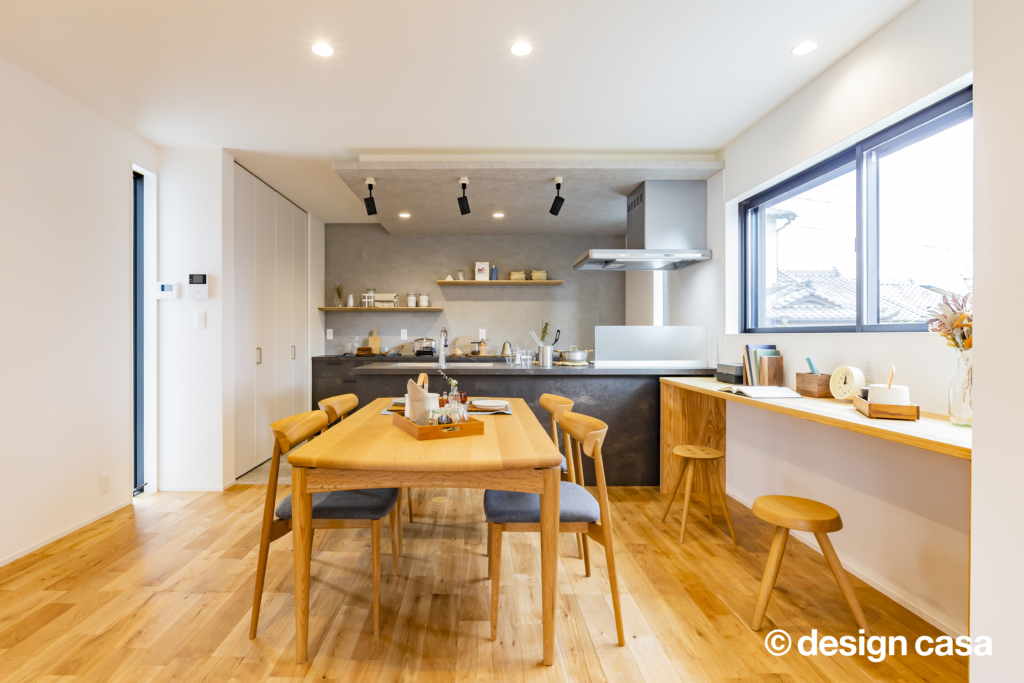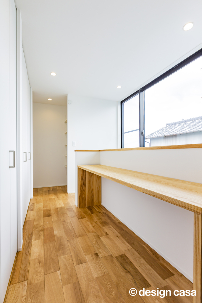 - お客様の声: 「初めての家づくりで、わからないことだらけでしたが、泉田さんが私たちの好みを丁寧にヒアリングしてくれて、理想のデザインを形にしてくれました。特に、リビングのスタディコーナーは、夫婦で一緒に仕事や勉強ができるお気に入りのスペースです。将来、子どもが生まれたら、子ども部屋にすることもできるので、長く住み続けられる家ができて、本当に満足しています!」