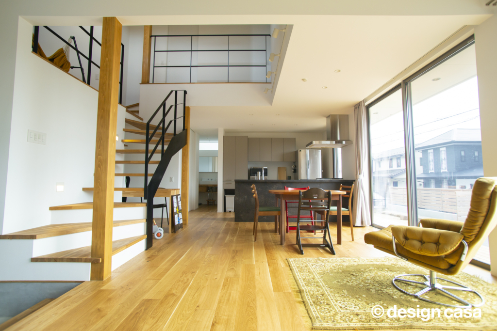 MyDesign/株式会社Izumidaでは、詳細なライフプランシミュレーションを行い、無理のない資金計画をご提案。 その上で、K様ご家族の「自然素材をふんだんに使いたい」「明るく開放的なリビングにしたい」というご要望を叶えるため、以下の工夫を行いました。