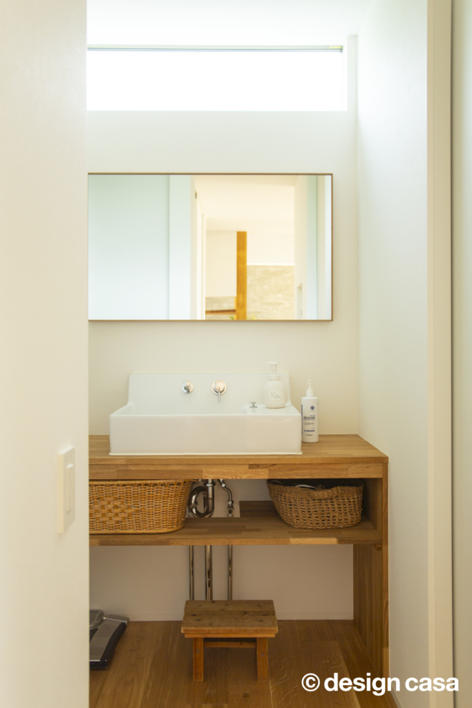 - 造作と既製品の組み合わせ: キッチンは、デザイン性の高い造作カウンターと、機能的な既製品の収納を組み合わせ、コストとデザイン性の両立を実現。